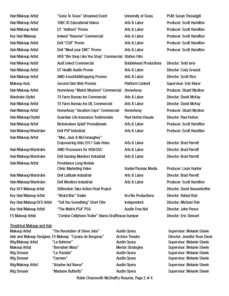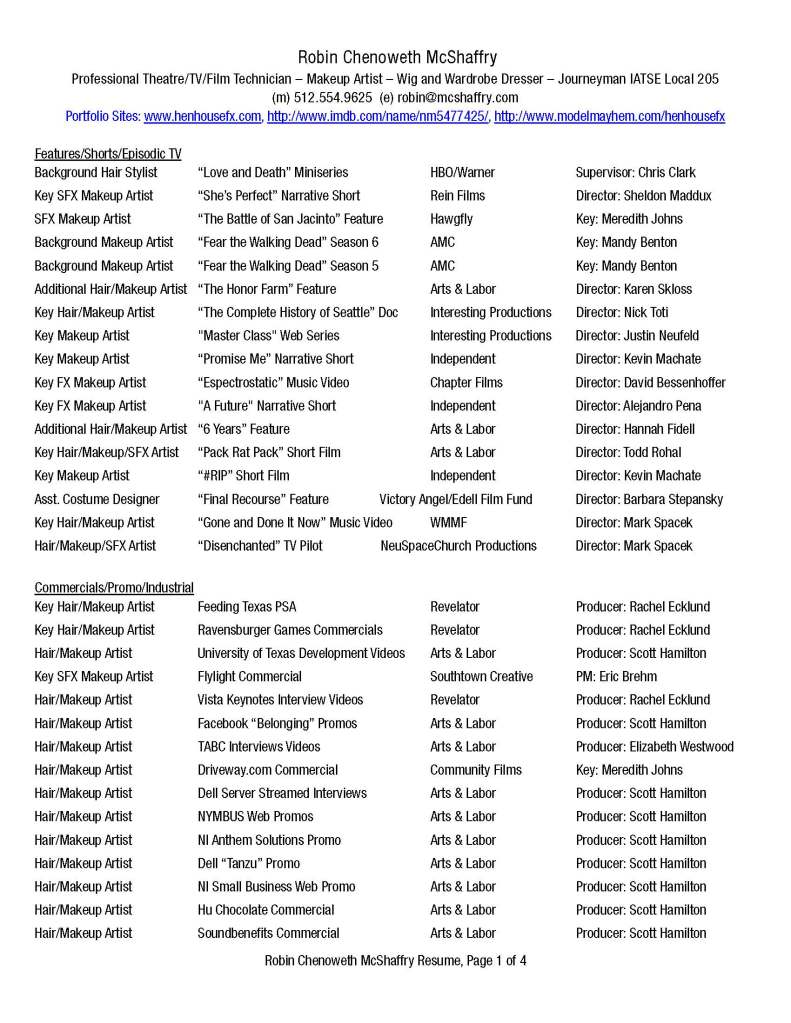 Makeup — Wigs — Special Effects — Management